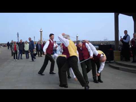The longsword dance originates in Yorkshire where many villages had their own tradition. This type of dance can also be called a hilt-and-point, and is performed by six or eight dancers linked together in a circle by swords. Each sword is about a metre in length and generally made of sprung steel with no point or cutting edge, and with a wooden handle at one end.